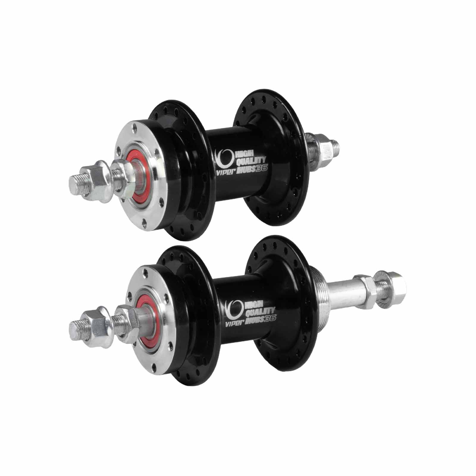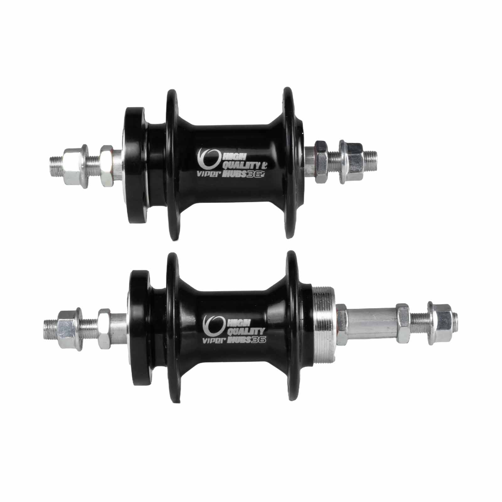 O conjunto de Cubos Viper X700 36F Dianteiro e Traseiro sem Blocagem é produzido em alumínio resistente, oferecendo robustez e longa vida útil. Seu sistema de fixação por eixo com porca garante montagem firme e estável, proporcionando maior segurança ao conjunto da roda.