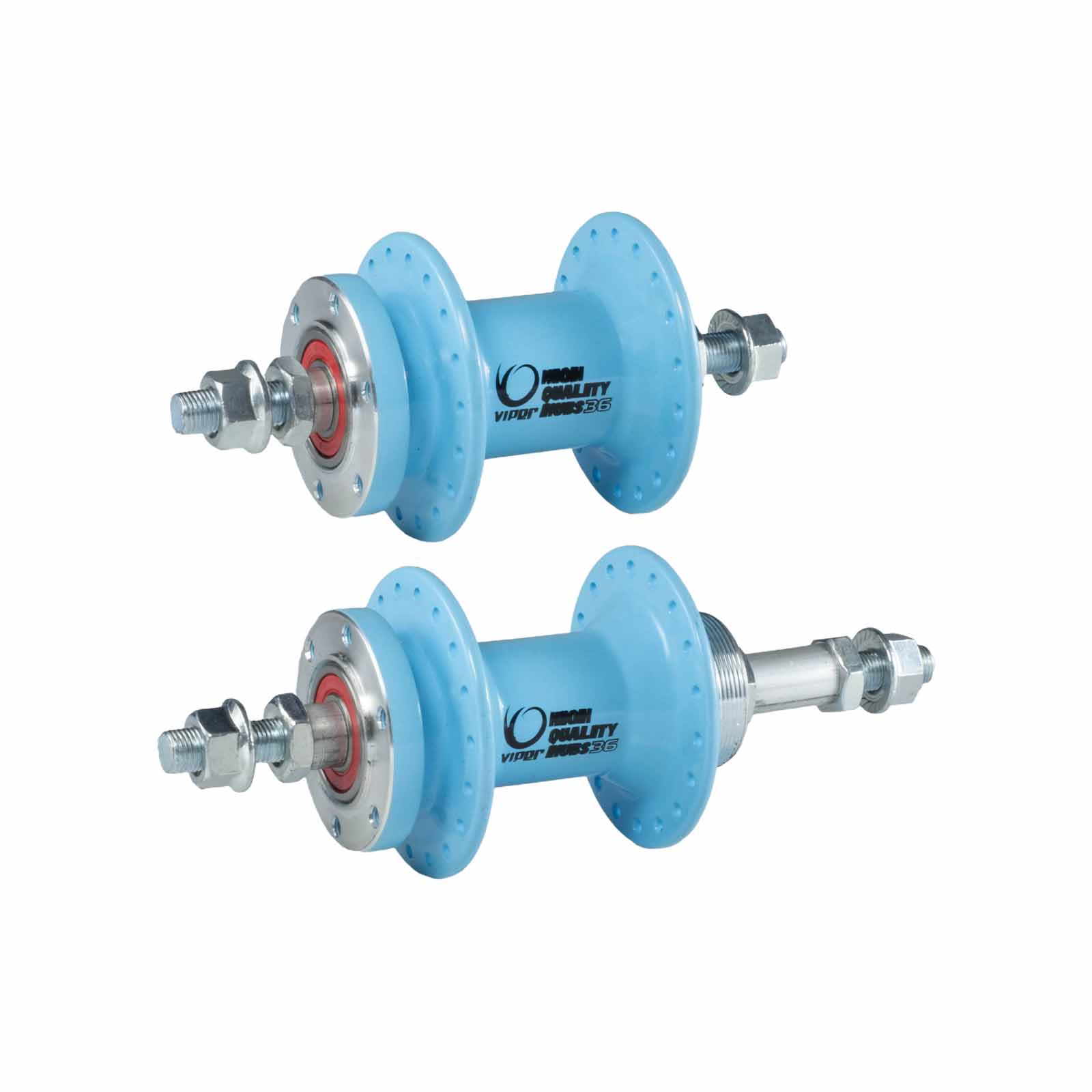 O conjunto de Cubos Viper X700 36F Dianteiro e Traseiro sem Blocagem é produzido em alumínio resistente, oferecendo robustez e longa vida útil. Seu sistema de fixação por eixo com porca garante montagem firme e estável, proporcionando maior segurança ao conjunto da roda.