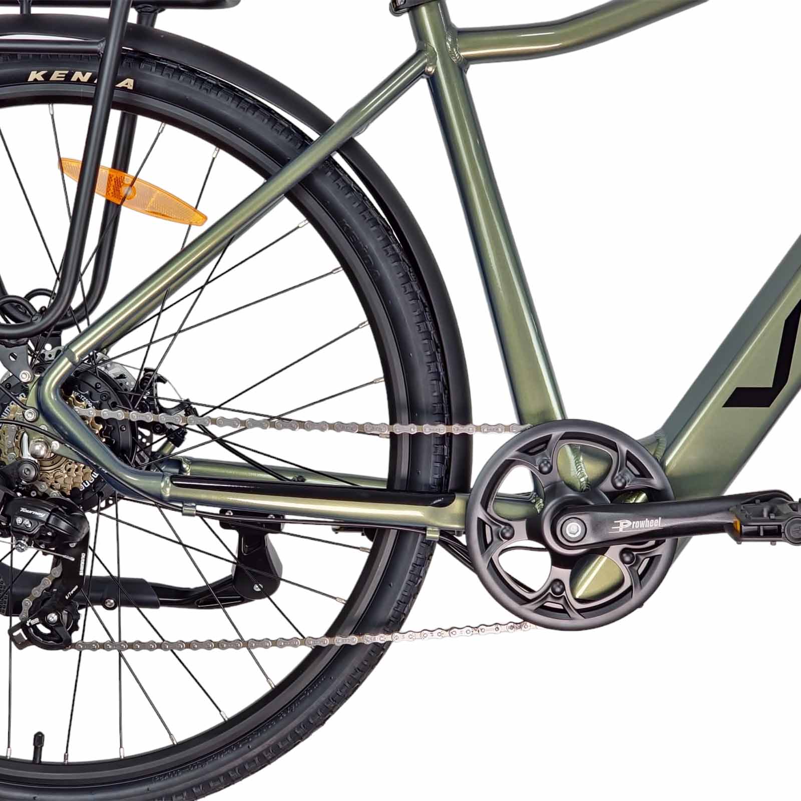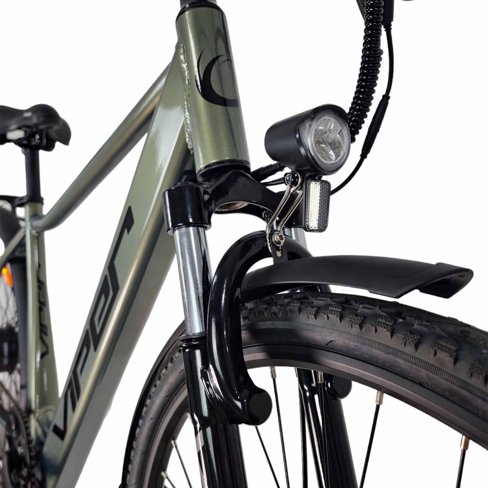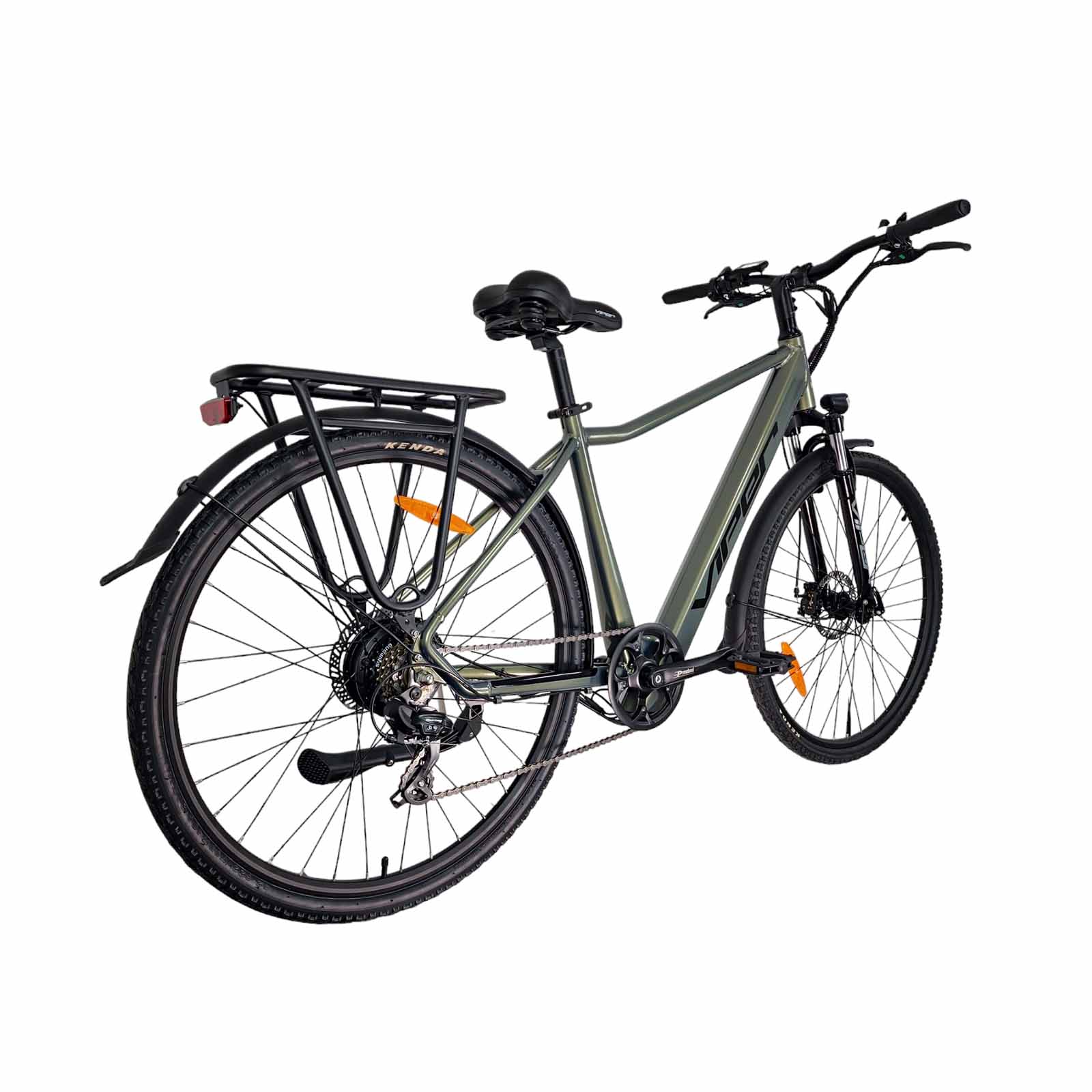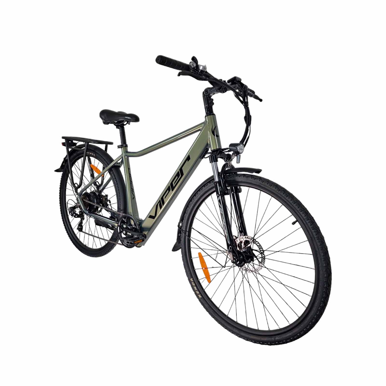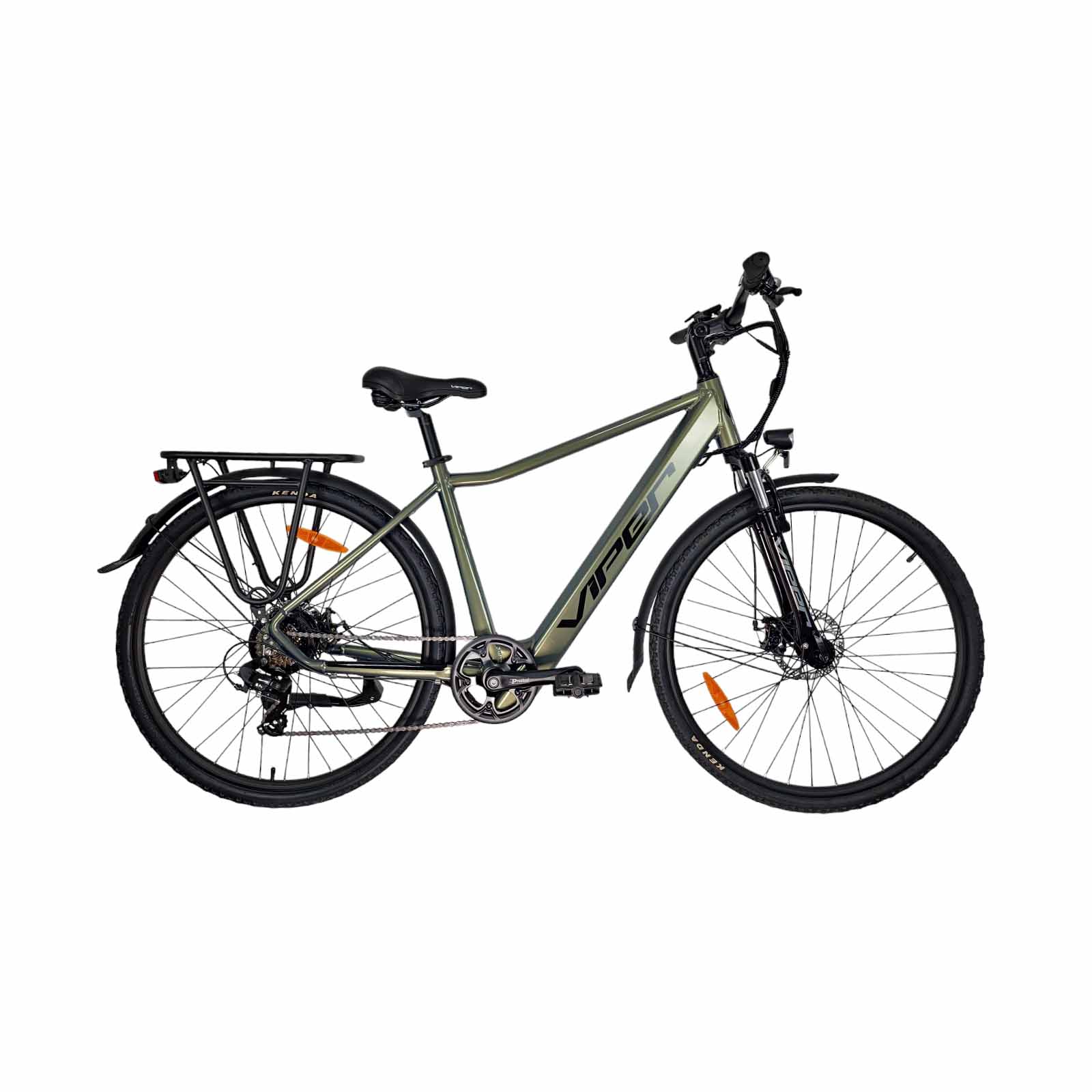 A e-Bike Viper Travel é a escolha perfeita para quem quer mais facilidade no pedal, seja no dia a dia na cidade ou em passeios mais longos. Ela traz praticidade e conforto, tornando qualquer trajeto mais tranquilo e prazeroso. Ideal para quem busca eficiência sem abrir mão de uma pedalada agradável, com muito estilo e liberdade para explorar Motor: - Potência: 350 W - Velocidade máxima: 32 km/h - Modelo: Cubo na roda traseira - Acionamento: Pedal assistido e acelerador de dedão Bateria: - Capacidade: 36 V | 7,5 Ah - Carregador: MDA 257 | 42 V/2 A | 90-264 V - Vida útil estimada: 500 ciclos - Autonomia: 25 km (somente acelerador) | 60 km (assistência de pedal) Características: - Pedivela 42 dentes - Roda livre 14-28 - Suspensão dianteira 45 mm - Freio a disco mecânico - Mesa com regulagem de altura - Câmbio traseiro Shimano Tourney - Alavanca de câmbio indexada SIS Shimano com visor - Rodas 700c - Pneus Kenda 28 x 1.5 - Quadro de alumínio 6061 Acessórios: Farol Bagageiro Pezinho Lanterna traseira Capacidade: Peso máximo do ciclista: 99 kg Peso máximo total (ciclista + passageiro + carga + acessórios): 122 kg Capacidade máxima da prateleira traseira: 32 kg Display: Lista completa de funções da tela Detalhamento de funcionalidades disponíveis Instruções para anular o limitador de velocidade Peso: 22 kg